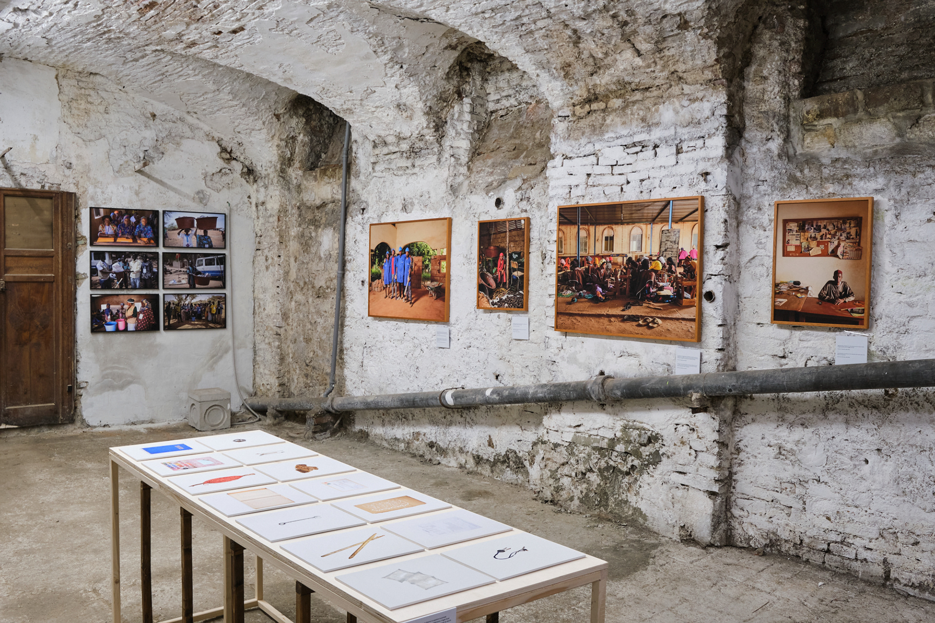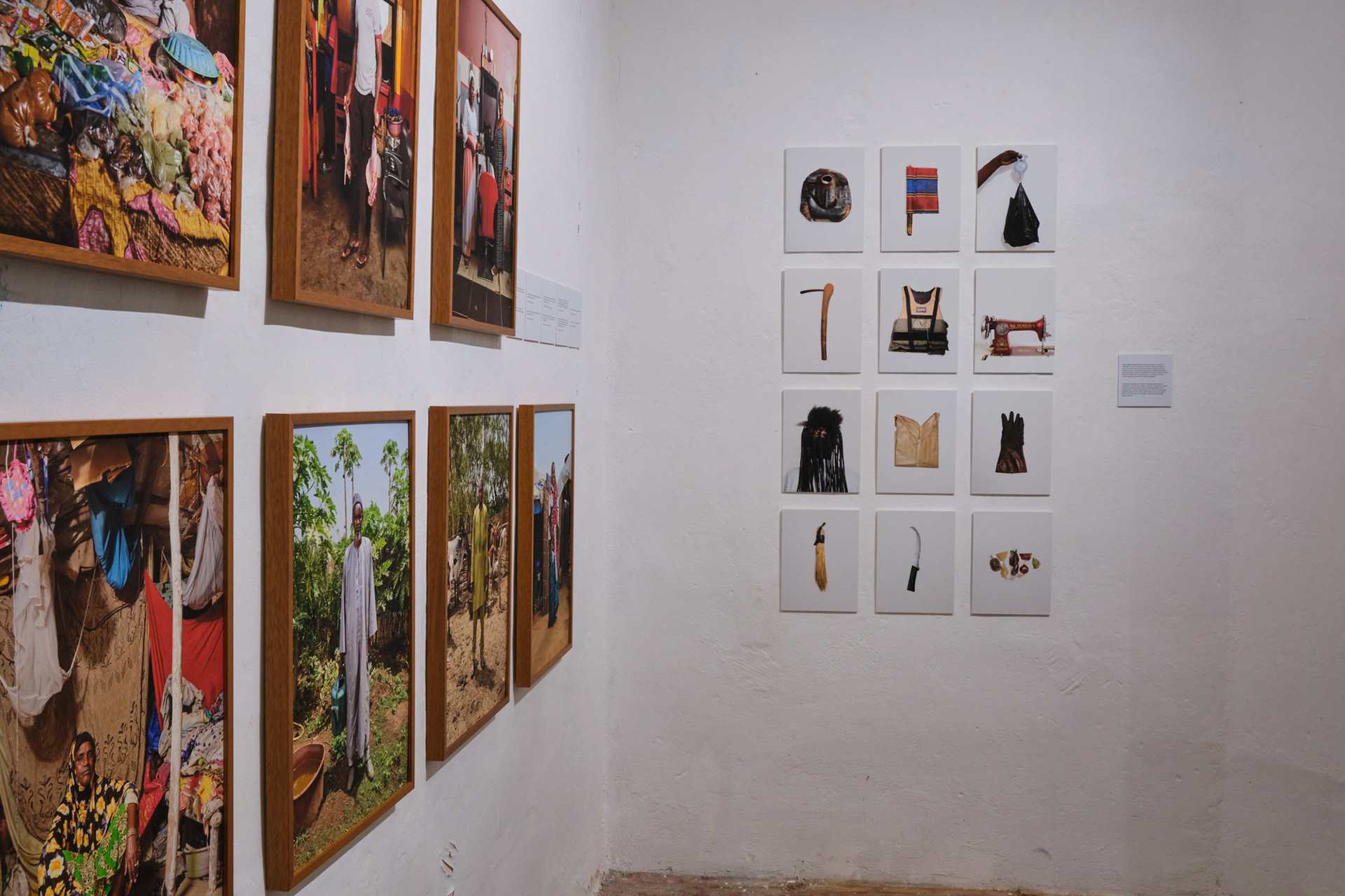 the magnet used in electronics training, the paintbrushes made from lollipop sticks to paint fabrics with earth, the drumsticks for playing music, the wrench for mechanical training, the animal feed from the Sénou field, the register of Mr. Bamadou’s association, the makeup used during training sessions, the certificate of participation from WeWorld’s training programs, the register of residents from the Mabilé site, the string used for measuring during construction training, the cardboard samples for henna tattoos, and the small bags of filtered drinking water.